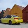 Mange fryktet M3 var død da BMW lanserte M4, men kort tid etterpå kom det en firedørs utgave med samme spesifikasjon og navnet M3. Vi har vært så heldige å låne en svært flott 2015 modell M3 med den svært spesielle fargen Austin Yellow. Fargen leveres kun til M biler slik alle entusiaster skiller denne fra naboens 3 serie diesel på en kilometers avstand. Fargen er utrolig flott i sollys og M3 sine særtrekk i karrosseriet kommer ekstra godt frem kontra eksempelvis en sort utgave siden skyggeeffekten fremhver konturer og karrosseriutvidelser som skjermer og panser ol. Bilen vekker enorm oppsikt og vi opplever at folk følger etter bilen og tar bilder langs veien.
